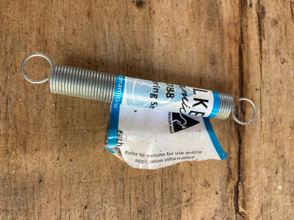 There are two springs in venco no3 and 5 wheels. The small one attaches to a small lug on the underside of the drip tray , the other end to the motor cradle. This spring maintains the correct pressure between the drivewheel rubber and cone so you get enough force to throw a decent amount of clay. Too much pressure would cause excess wear to the drivewheel so it’s important to only use springs supplied by venco. These are available from good pottery suppliers.