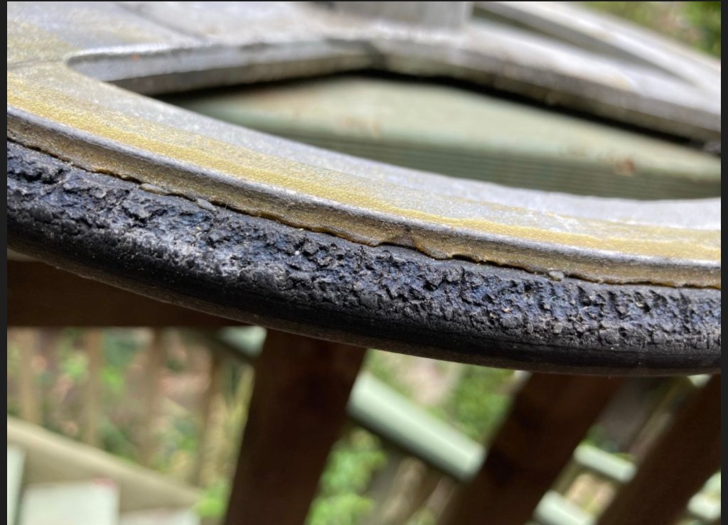 Two images showing a normal drive wheel (top pic) and a badly damaged one.(bottom photo) At the moment a new drive wheel will set you back around $250 plus installation if you choose not to do it yourself. It’s quite easy to do by the way. The main reason I see this sort of damage is because of missing grommets. You should never use a wheel that has missing grommets because it causes misalignment of the aluminum cone on the end of the motor shaft and it can dig into the rubber causing unrepairable damage. The drive wheels last between about 15 -30 years depending on usage and how the wheel is stored. I have seen some old models from the 80’s where the dive wheel is still usable but usually by this stage they start falling apart. The first sign of deterioration is small vertical cracks around the circumference of the wheel. If got to soon enough they can be reconditioned