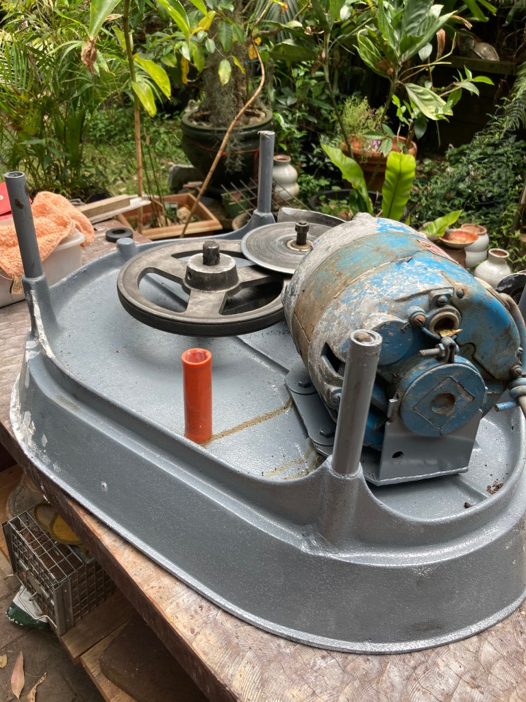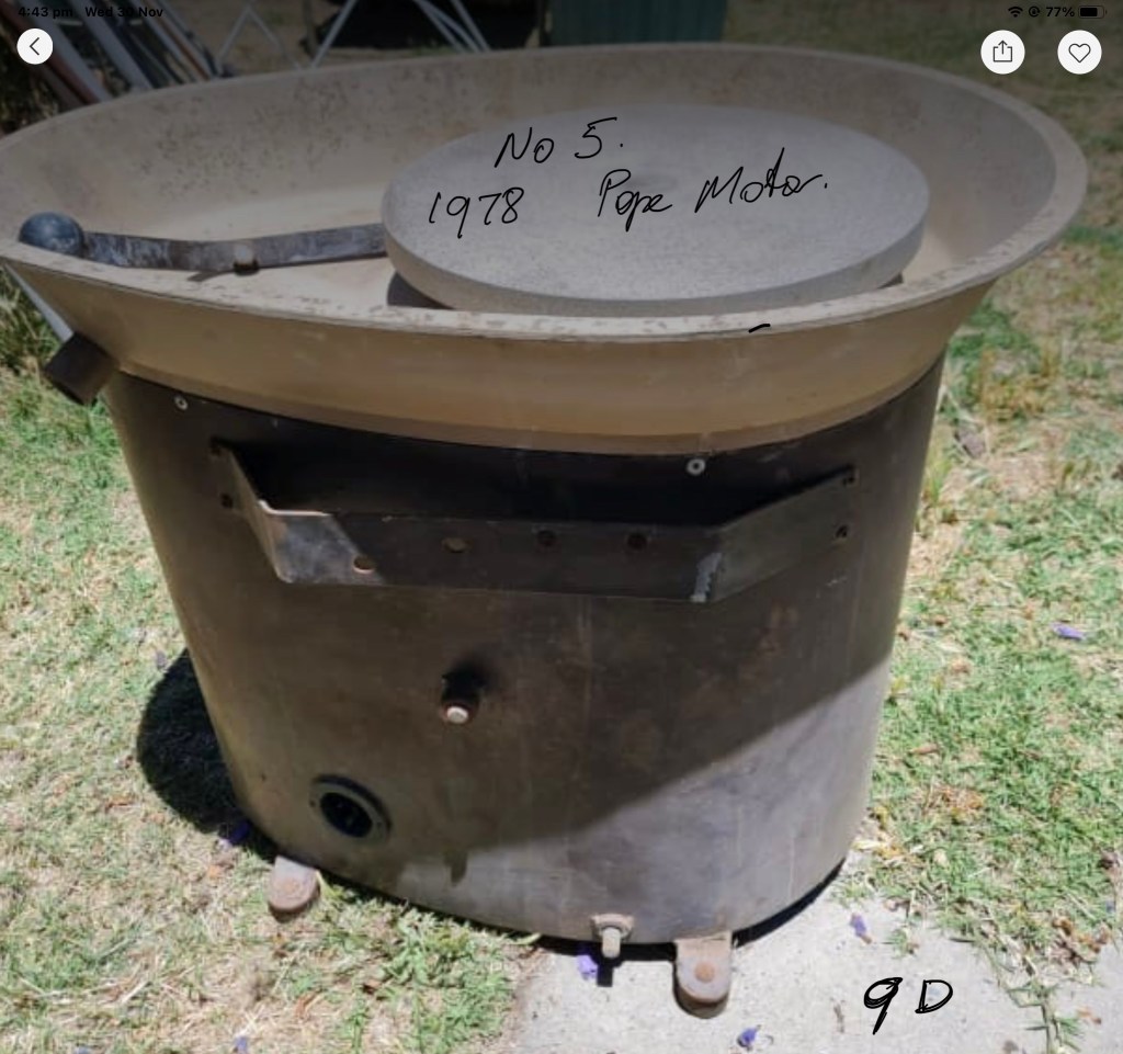 Very early No3 style, made in Melbourne prior to Geoff moving to W.A. Has a Busch brand motor with caps for oiling the bearings. No drainage hole in the tray.