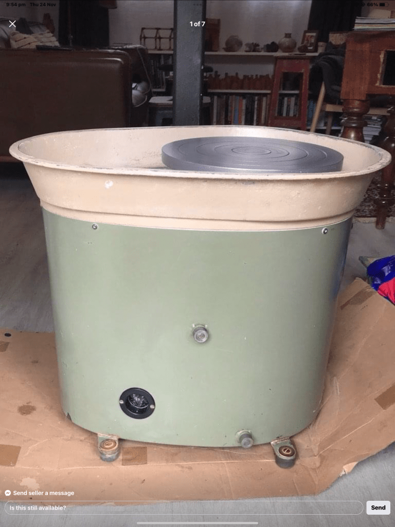 The first of the Venco electronic wheels was introduced sometime in 1999. I am not sure of the exact date but will update when I know. I haven’t had a lot of experience with these as not many were made. They were very popular with potters making large work. Some of the big blokes like Bill Powell have a lot of good things to say about them. Had a DC motor,possibly 3/4 hp or more, and electronic controller and a potentiometer in the foot pedal. Anyone familiar with American Brent wheels will know the setup.